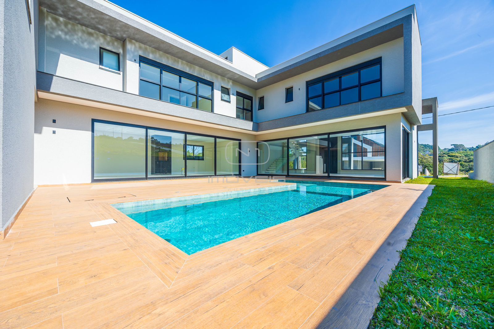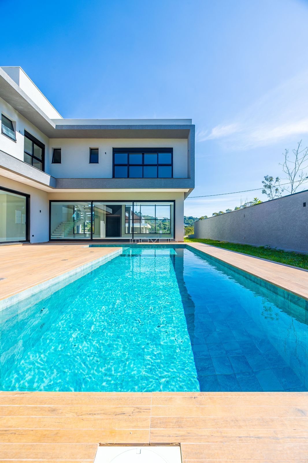 O espaço externo é um verdadeiro convite à vida ao ar livre: amplo quintal com gramado, piscina com preparação para aquecimento e a liberdade de criar memórias inesquecíveis em cada estação do ano.
